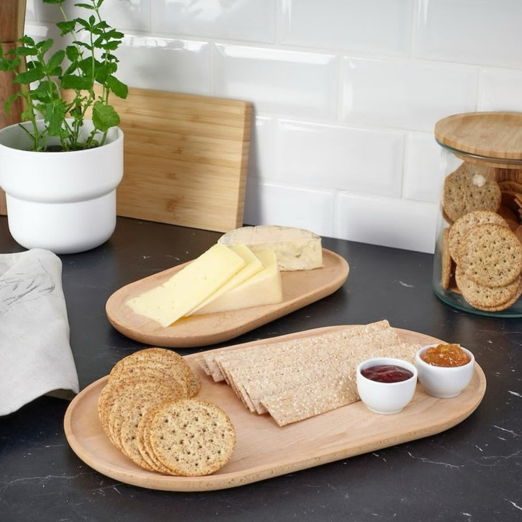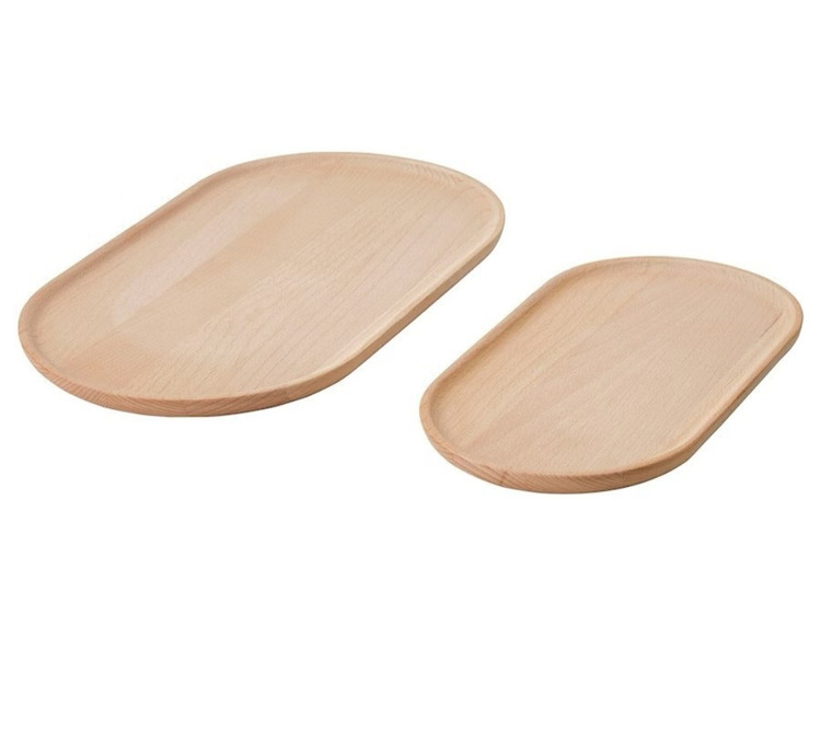 سینی سرو ایکیا پک ۲تایی باشکل بیضی باکیفیت و خوشگل جنس : چوب راش جامد سایز بزگ :۲۰۰×۳۶۰ سایز کوچک : ۱۵۰×۲۸۰ مناسب برا تنقلات، میوه، و سینی شمع و اکسسوری و دیزاین خونه