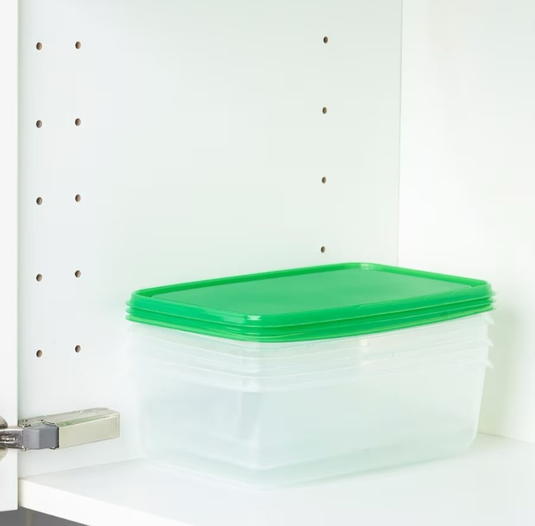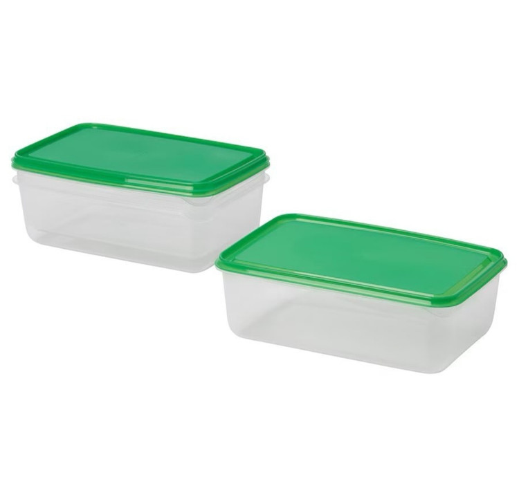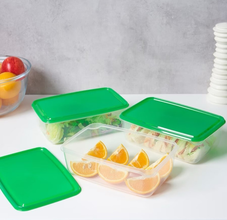 ظرف نگهدارنده ایکیا پک ۳تایی رنگ درب : سبز جنس: پلاستیک پروپیلن طول: ۲۳ سانت /عرض: ۱۶ سانت /حجم: ۱.۹ لیتر/ ارتفاع: ۸ سانت مناسب برا داخل یخچال و فریزر مناسب برا تفکیک غذا و تنقلات 🍓🥑🍬🍕