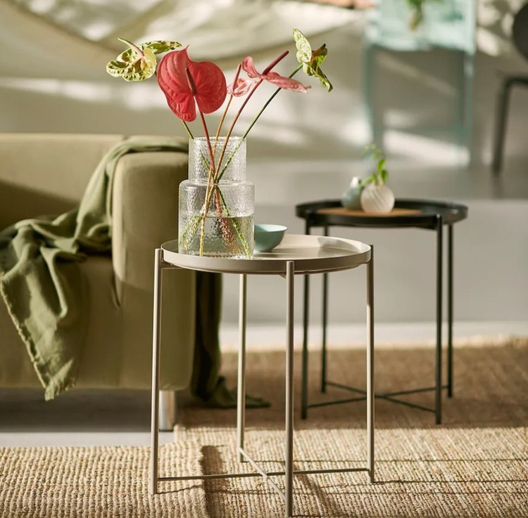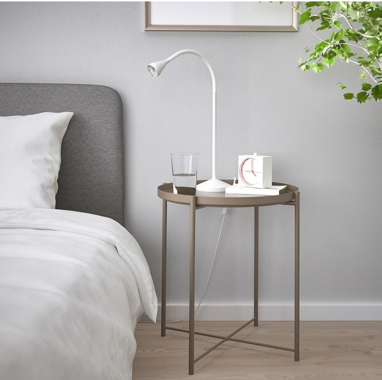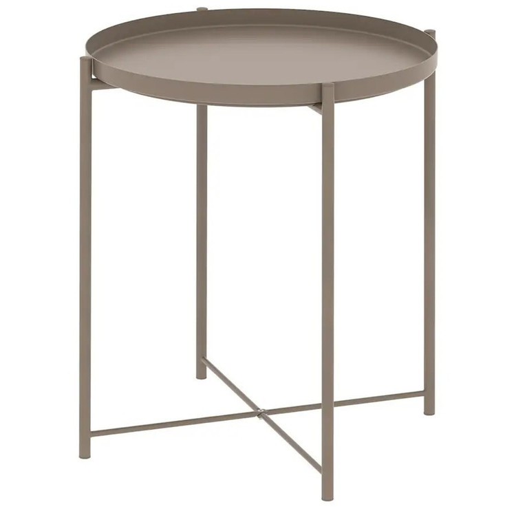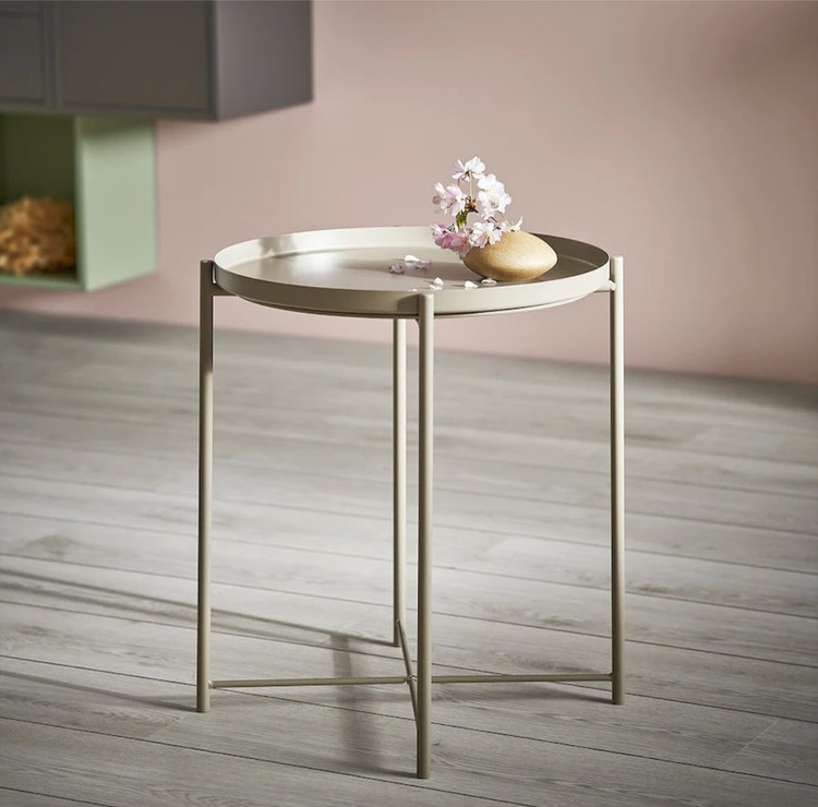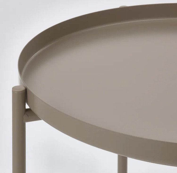 میز عسلی ایکیا رنگ بژ تیره مناسب برا پذیرایی، اتاق خواب و محیط اداری ارتفاع ۵۳ سانت قطر ۴۵ سانت جنس فولاد با پوشش رنگ اپوکسی