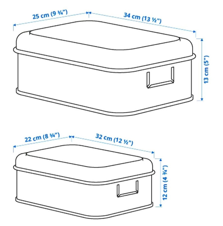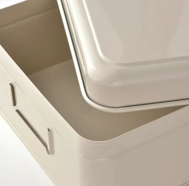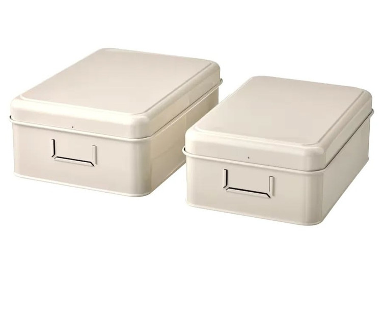 باکس/ جعبه فلزی ایکیا جنس: استیل با پوشش اپوکسی پک 2عددی رنگ کرم ابعاد:25/13/34 مناسب برا ذخیره سازی وسایل اتاق و آشپزخونه ودیزاین این محصول یکم دارای زدگی خیلی جزئ است