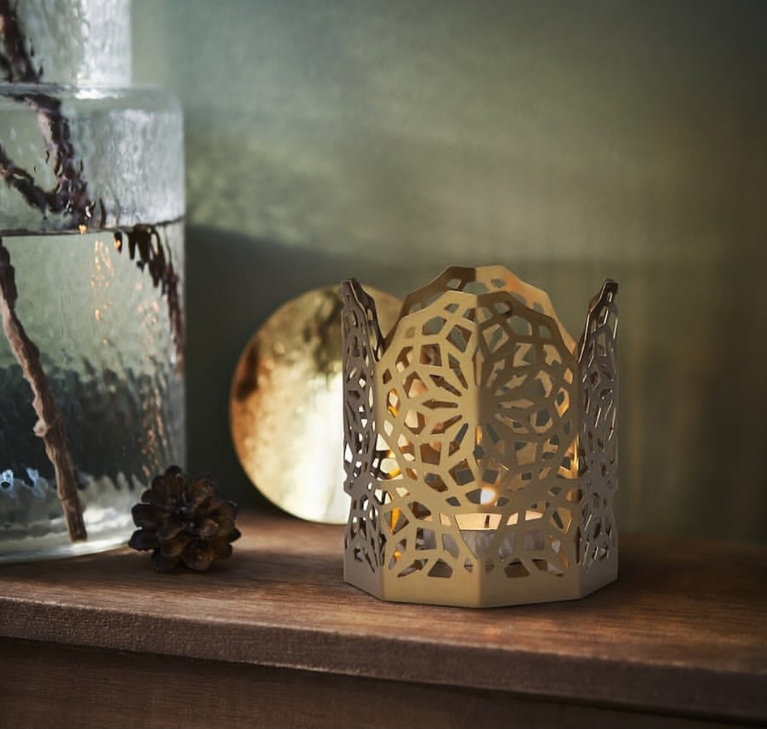 جا شمعی رومیزی ایکیا جنس: استیل رنگ طلایی ابعاد:8×8×9 جا شمعی طلایی دلبر با طراحی خاص و خوشگل ✨️ مناسب برای روی میز وشلف و کتابخانه